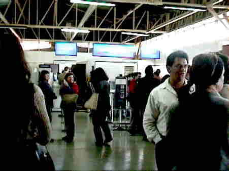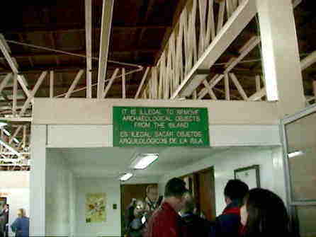 「島から遺跡に関わるものを持ち出すことは禁止されています」と書かれている出発ゲート。これをくぐるとイースターとはお別れ。中には普通の金属探知器ゲートと、土産販売店、ちょっとしたバーがある。ちなみに土産物屋は街で見かけた土産物屋のおじさん、オバサンがものを売っていた。街で売っていた主なものはみんな揃っていたが、値段は街の1.5倍から2倍の値段が付けられていた。