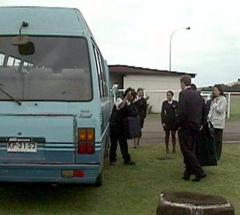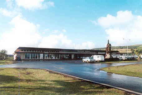 タヒチから来るにしても、サンチャゴから来るにしてもここまではかなり遠い。ランチリのスタッフも総入れ替えとなる。だから飛行機到着少し前になるとランチリスタッフ全員がホテル(?)からマイクロバスに乗って空港にやってくる。クルー達が、一般客と同じ駐車場に車を止め、同じ入り口から入るというのは普通あり得ないことだが、国際線地方空港ならではの風景。