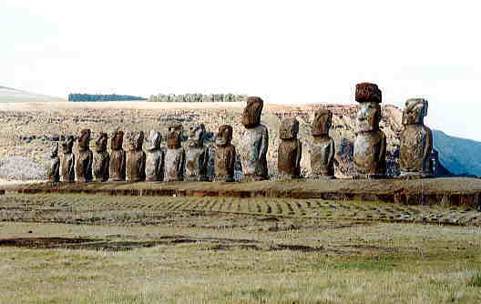 ポリネシア地区最大の歴史的遺産といっても過言では無いだろう。50t近いモアイが15体、両翼100m以上のアフという、巨大な石のモニュメントである。ここは1960年にチリ沖地震の津波で完全に倒壊してしまったのだが、日本のクレーン会社「TADANO」の技術・資金援助により見事復旧された。