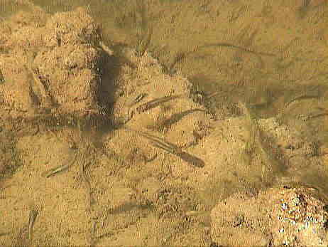 湖の中をよーく見ると魚がいた。小さいけれども大量に群を成して住んでいた。種類の特定が出来ないが、島本来のものか、それとも後になって西洋人によって持ち込まれたのかは不明だが、この湖に1〜2cm程度の淡水魚が大量に住んでいることは確か。