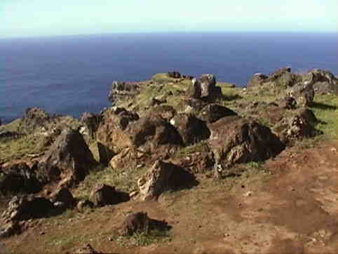 ここにある岩は玄武岩で、モアイの凝灰岩よりは強いが、大変強い岩石では決してない。これらもいつかは強風と潮風にさらされて風化してしまうのだろうか。